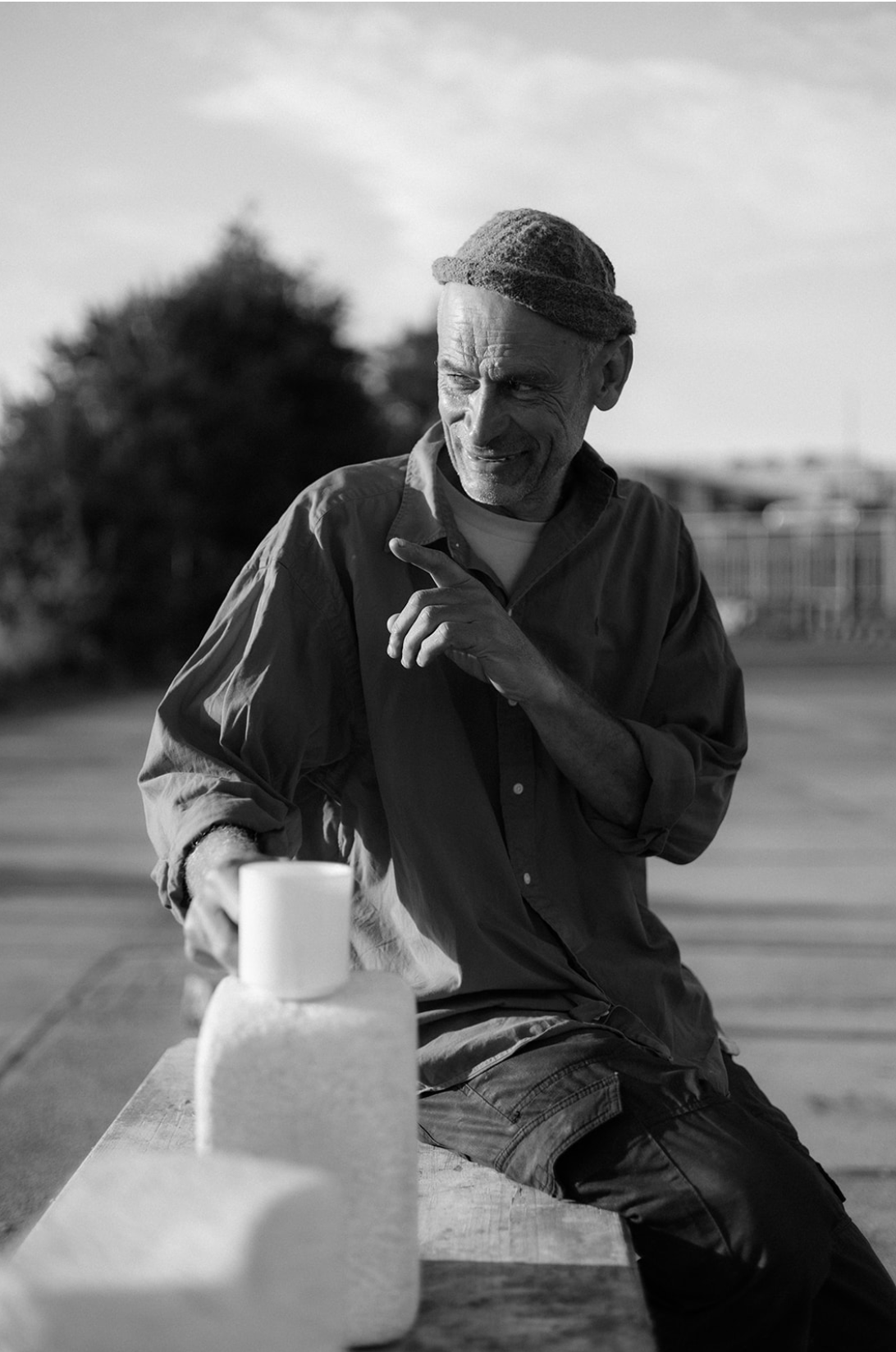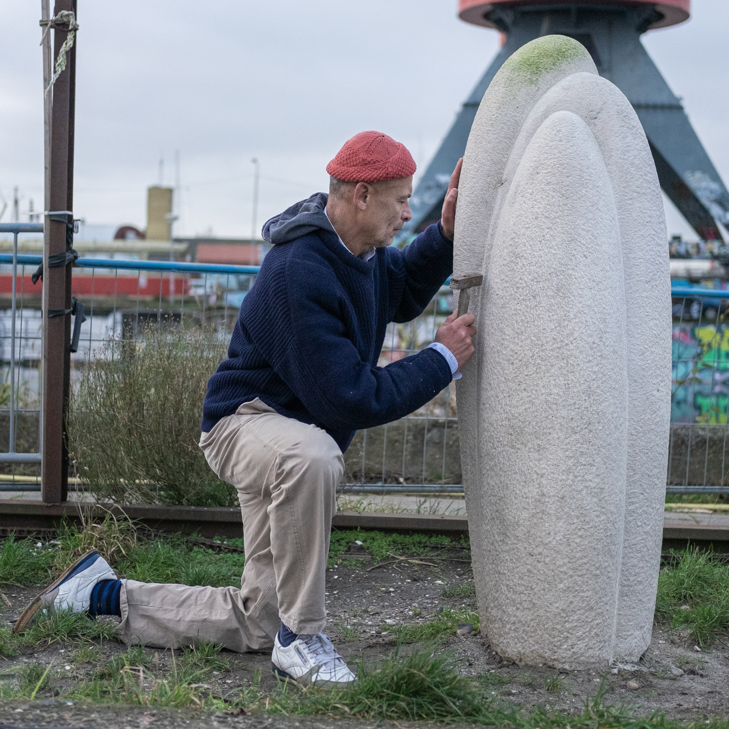 Nirman works only with hand tools, outside, and in all weather conditions throughout the seasons besides the water and a vast expanse of open sky. He describes being in the open as an endlessly stimulating starting point for all of his sculptures, drawings and paintings.