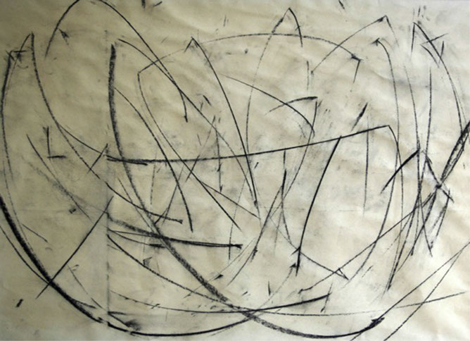 “When he draws or paints, Nirman works fast, impulsively, and non-figuratively. For him, paint plays a subservient role. His theme is expressive tracks of black and white.” – T. Butzlaff